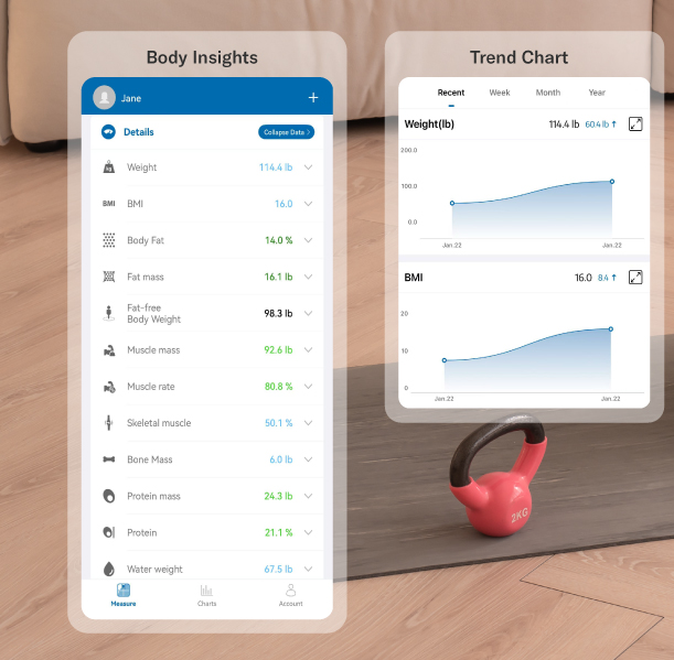 Go beyond weight. The Smart Scale measures 20 essential health metrics including: